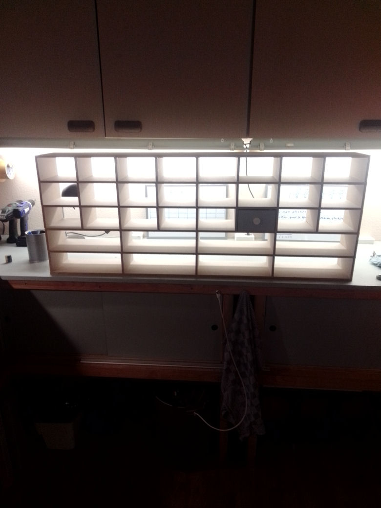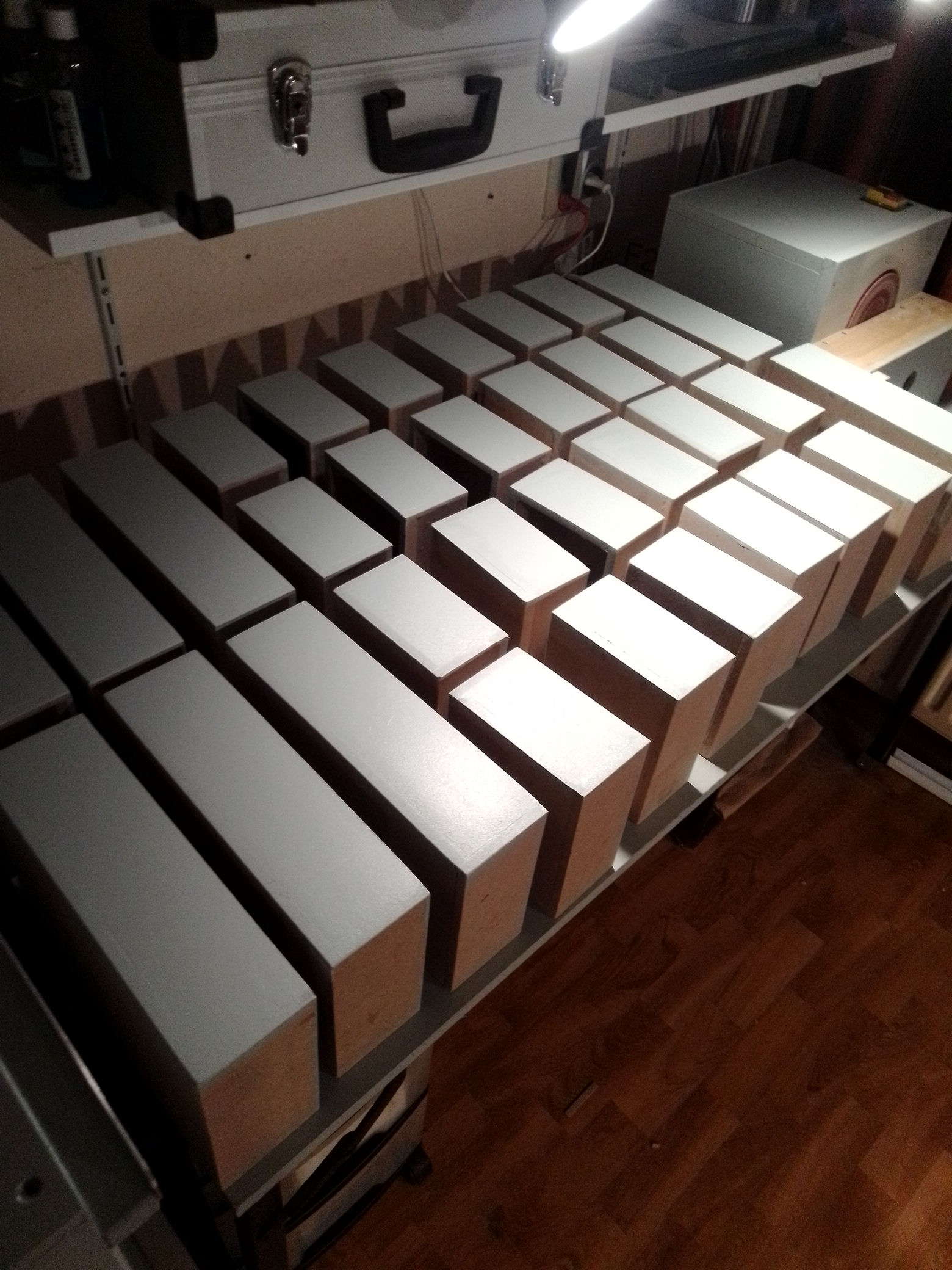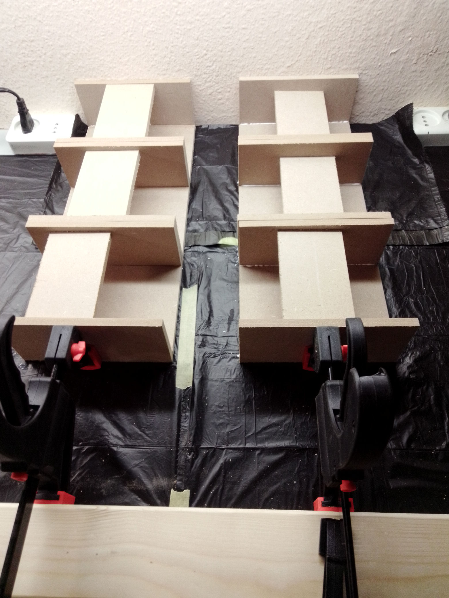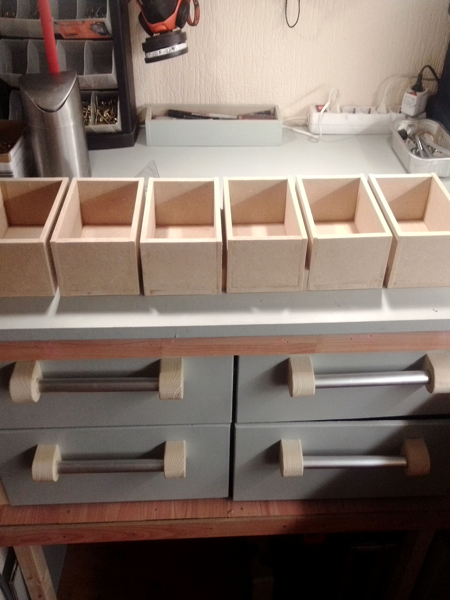 Deze ladenkast is gemaakt van Medium-Density-Fibreboard. MDF is extreem vlak en recht. Het is een zeer goedkope manier om kasten te maken.